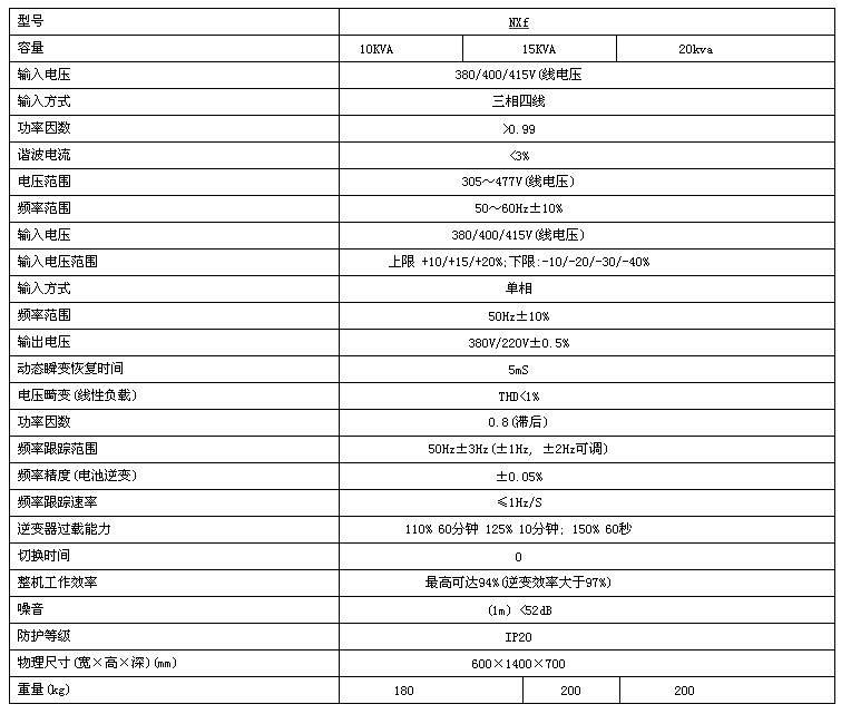 Paradigm NXf系列高性能UPS(10~20KVA)是艾默生网络能源最新推出的新一代三进单出型全数字在线式智能交流不间断电源系统,适用于各种单相负载及其它应用环境。包含10kVA、15kVA、20kVA三个型号。可6台机器直接并联运行。主要适用于小型数据中心、通信好博在线客服、计费中心、精密控制室、过程控制中心。