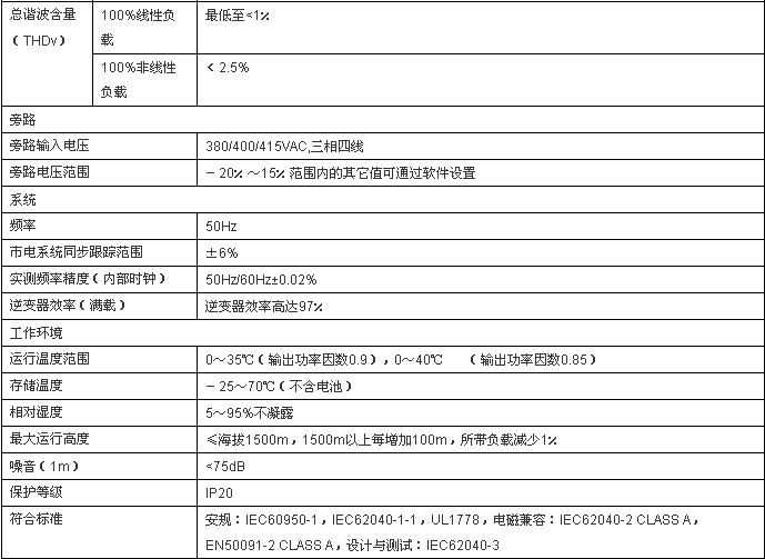 · 在线式双变换设计,完全隔离市电及油机可能存在的各类电网污染及电网故障对负载的影响。